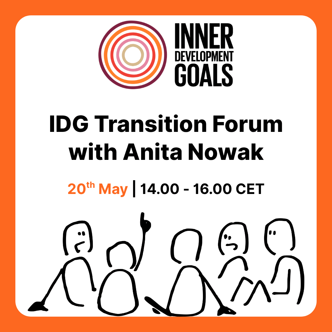 This is why we are co-creating the Inner Development Goals (IDG) – a non-profit initiative committed to fostering inner development towards more sustainable futures. We research, collect, and communicate science-based skills and qualities that help us to live purposeful, sustainable, and productive lives.